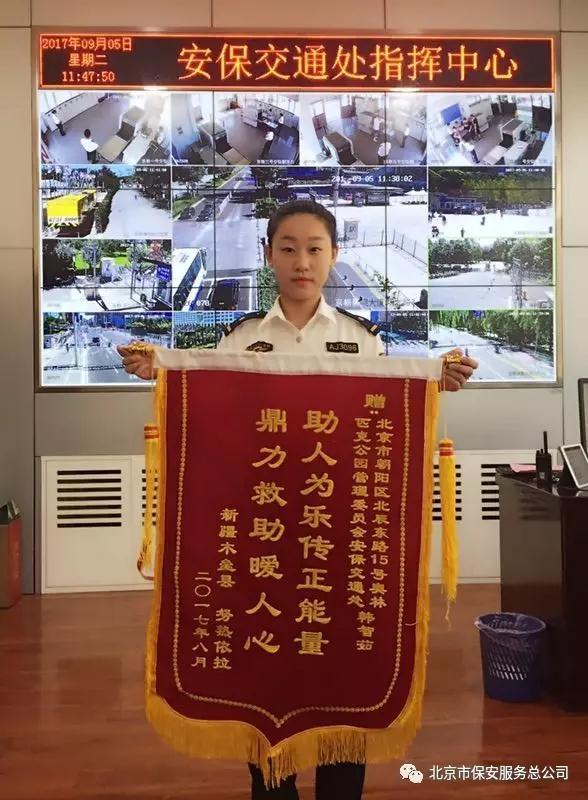 9月4日上午,奧林匹克公園管理委員會(huì)安保交通處收到了遠(yuǎn)在千里之外的新疆木壘縣努熱依拉女士寄來的錦旗和感謝信。感謝朝陽保安分公司駐奧林匹克公園安檢隊(duì)女隊(duì)長(zhǎng)韓智茹以實(shí)際行動(dòng)傳遞的正能量,溫暖了千里之外那一顆顆焦灼不安的心。