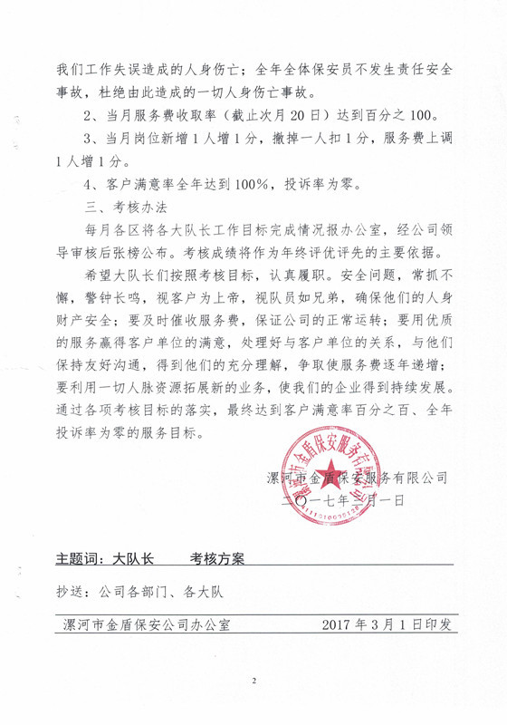 2017年大隊(duì)長(zhǎng)工作考核方案
