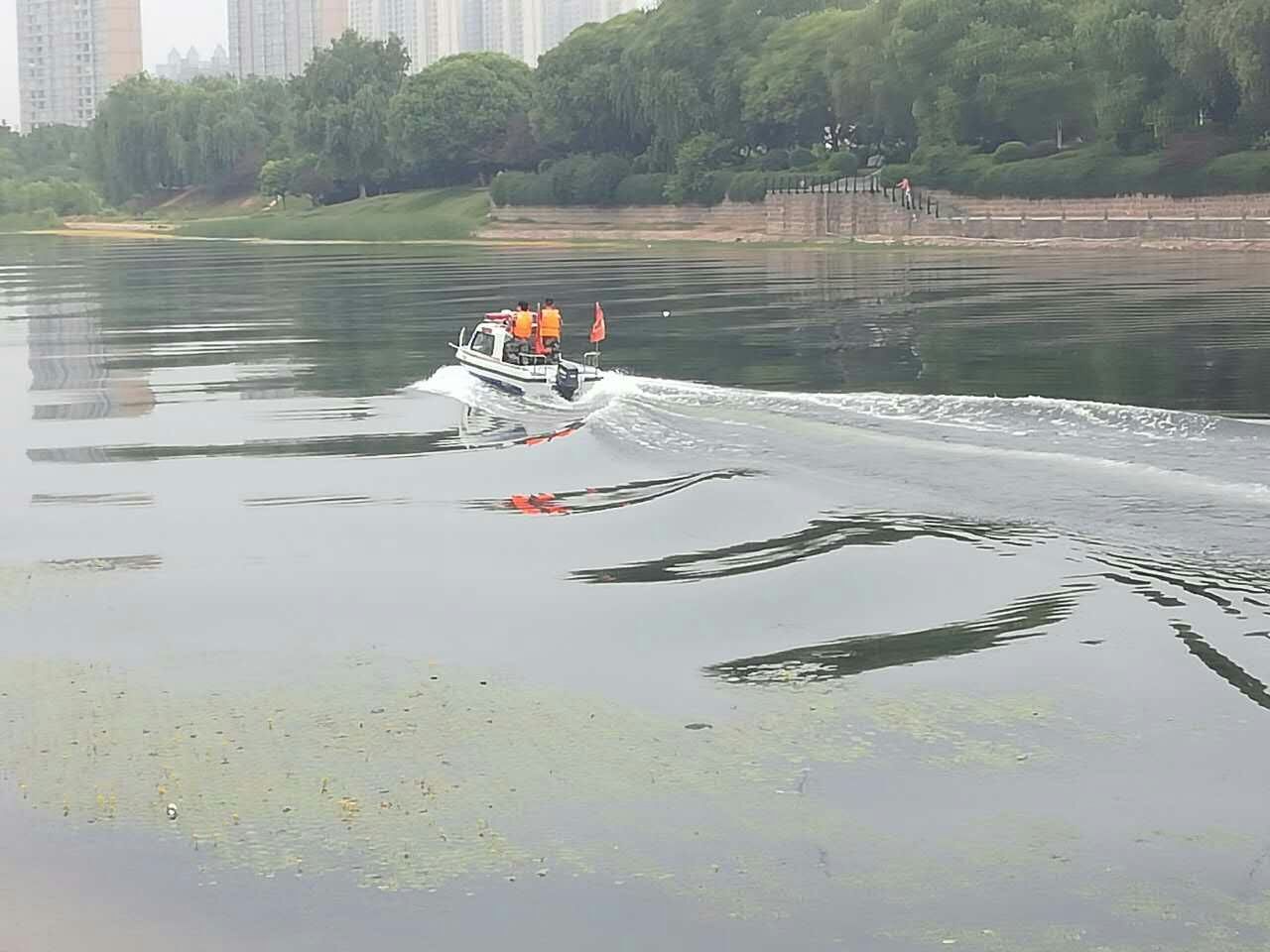 澧河水源保護(hù)巡邏艇 金盾保安隊(duì)員水上巡邏中